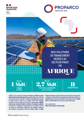 Cette nouvelle édition présente les solutions financières et d'accompagnement de Proparco déployées sur le continent africain, pour répondre au plus près des besoins de nos clients du secteur privé.